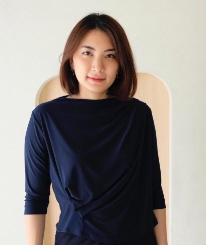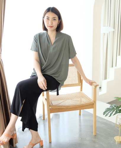 เสื้อยืดจีบบนจีบล่าง แขนสามส่วน